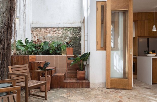 Immerse yourself in Zona Colonial life with this Mediterranean Boho Chic 2-bedroom apartment on Calle Sánchez. Just steps from museums, churches, and top restaurants, it features a cozy family room and stylish designer touches. Book your stay and experience the vibrant culture and charm of Santo Domingo!