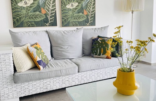 Welcome to your seaside oasis! Our 1-bedroom master suite offers a king-size bed and stunning ocean views. The fully equipped kitchen caters to your culinary needs. The spacious living room provides more ocean panoramas, and the furnished balcony invites you to sip and relax with the soothing sounds of waves. Accommodating up to 6 guests on comfortable queen mattresses, the apartment features WiFi and AC throughout.