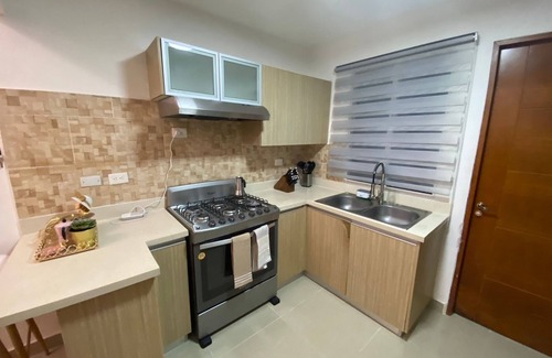 Relax with the whole family at this peaceful place to stay. This penthouse is located in the heart of moca city, close to all the best places in the town. The apartment offers you a extra large master bedroom with bathroom, ceiling fan, AC, smart TV, relaxing king size bed, walking closet and a spectacular city view. A second big bedroom with ultra soft queen bed, bathroom, closet, AC, ceiling fan and a bluetooth projector that allow you to connect your phone and you can watch and listen to your favorite music and movies on a big screen like a movie theater. If you feel tire of working all year and came to the city to take a little breath this penthouse has a living room with very comfortable furnitures that will relax your body. A living room furnished and a 65” inches smart TV with cable and all the most popular apps like youtube, Netflix, Hulu, etc. A dining room, visiting 1/2 bathroom, full equipped kitchen with refrigerator, microwave, blender, toaster, knives, spoons, folks, towels, air-frier, stove with oven, coffee maker, cups, glass cup, bottle and can opener, Wine opener, calderos. Loundry room with a washer and a dryer. A balcony, and one of the best part of the penthouse is the terrace with a 5 people jacuzzi and a beautiful view to the city and the wonderful mountains like villa trina and el mogote.