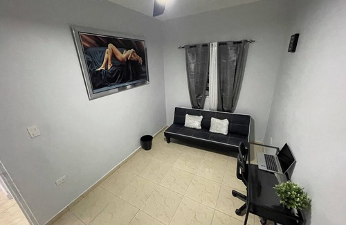 This 2-bedroom house in Moca is perfect for your escape. With 2 queen beds, AC, and a cozy office space with a futon, guests will feel right at home. The bathroom features a refreshing shower and a hairdryer for convenience. You're sure to make fantastic memories with a stay at our place.